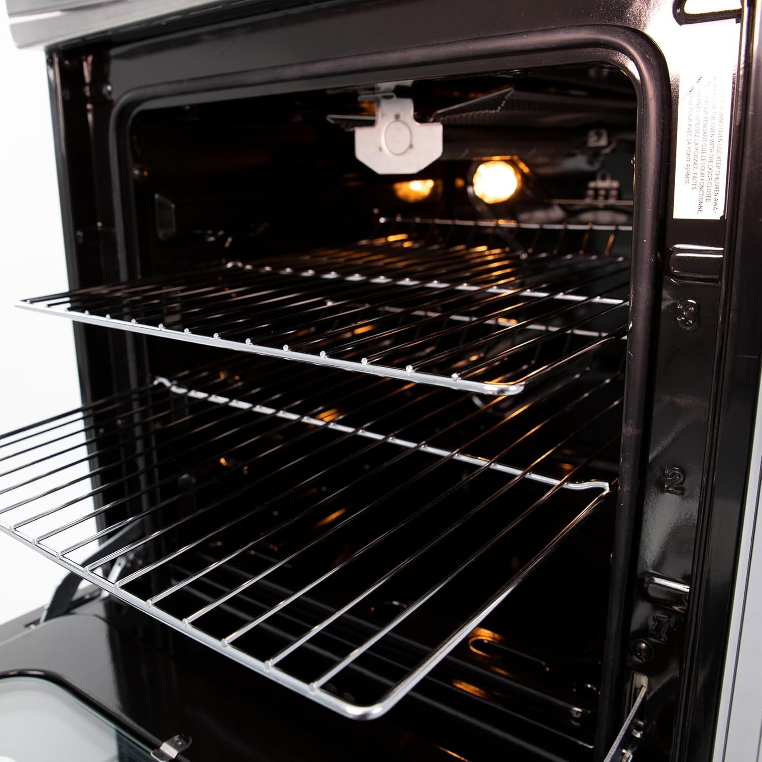 ADDITIONAL BENEFITS: Includes a storage drawer, LP conversion kit, ADA-compliant design, and a backsplash with integrated oven vents for proper air circulation.