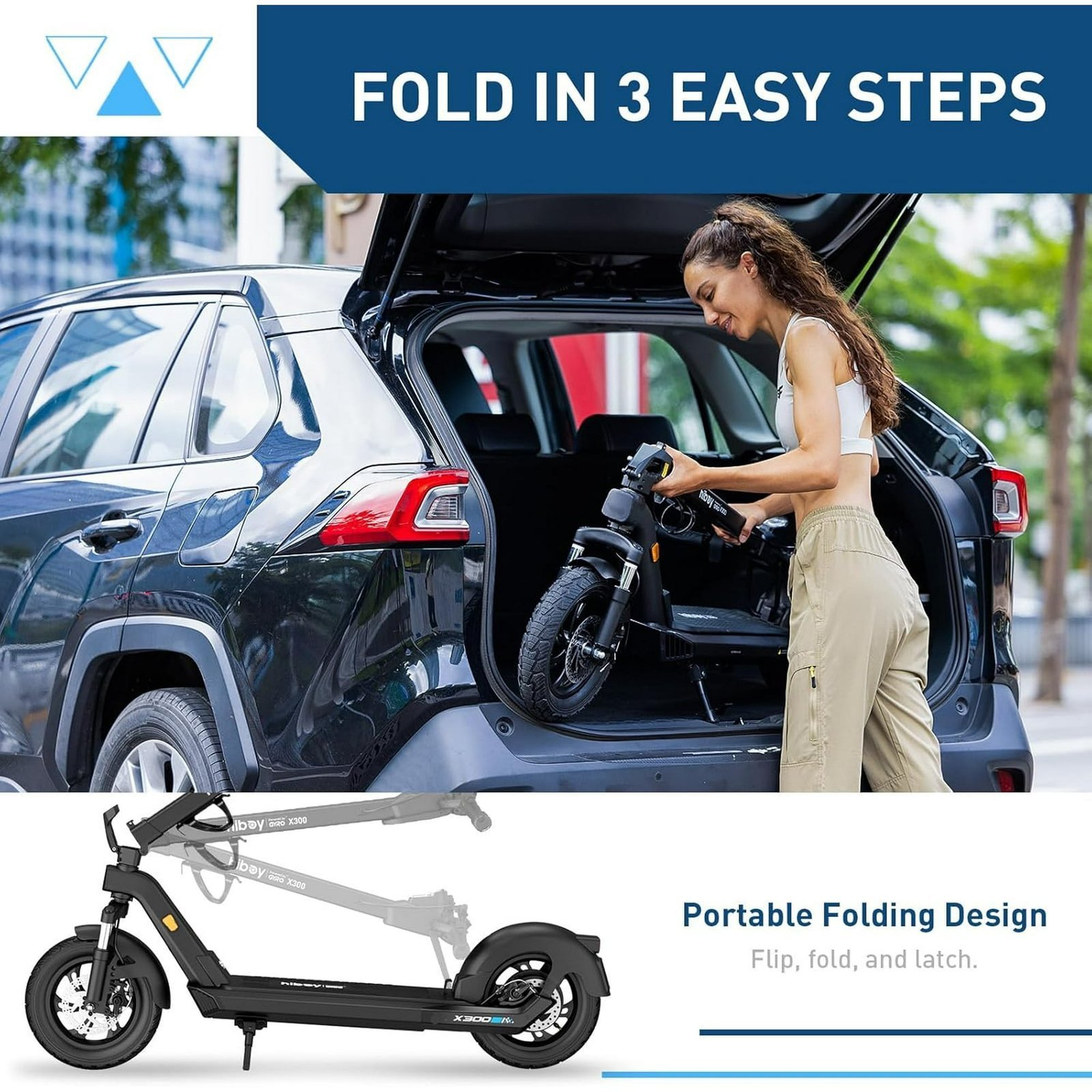 Hiboy X300 Electric Scooter, 700W Peak Motor, 12″ Pneumatic Tires, 23 Mph & 38 Miles Range, Folding Commuter Electric Scooter for Adults